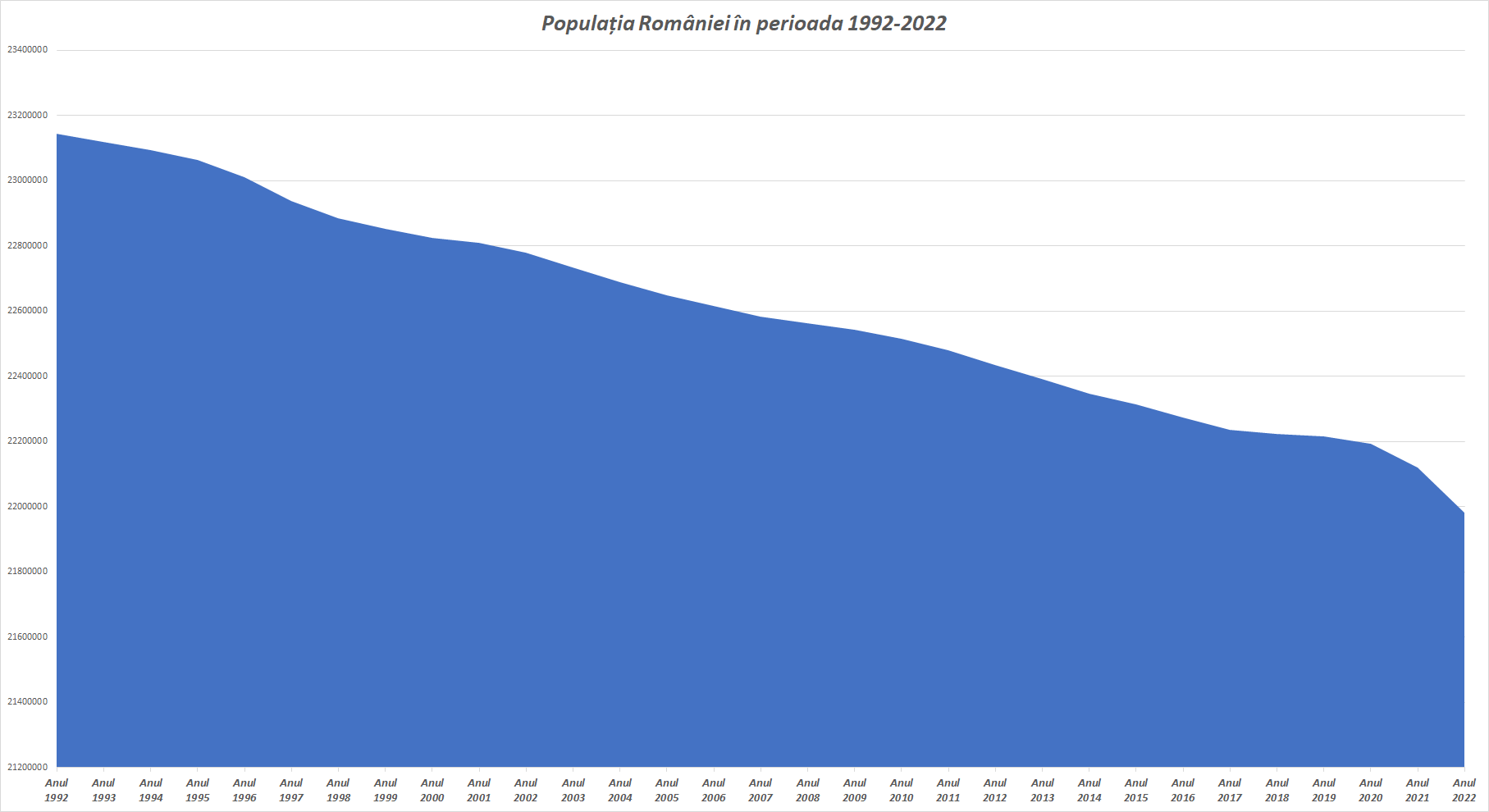 În ultimii 30 de ani, România a pierdut 1,16 milioane de locuitori, echivalentul orașelor Cluj, Iași, Timișoara și Constanța, luate la un loc