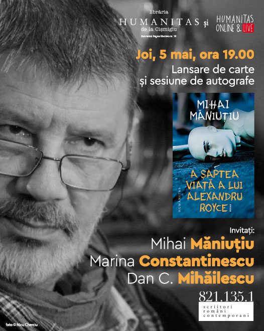 Un spectaculos joc al perspectivelor în noul roman de Mihai Măniuțiu, „A șaptea viață a lui Alexandru Royce” – lansare cu  Mihai Măniuțiu, Marina Constantinescu și Dan C. Mihăilescu