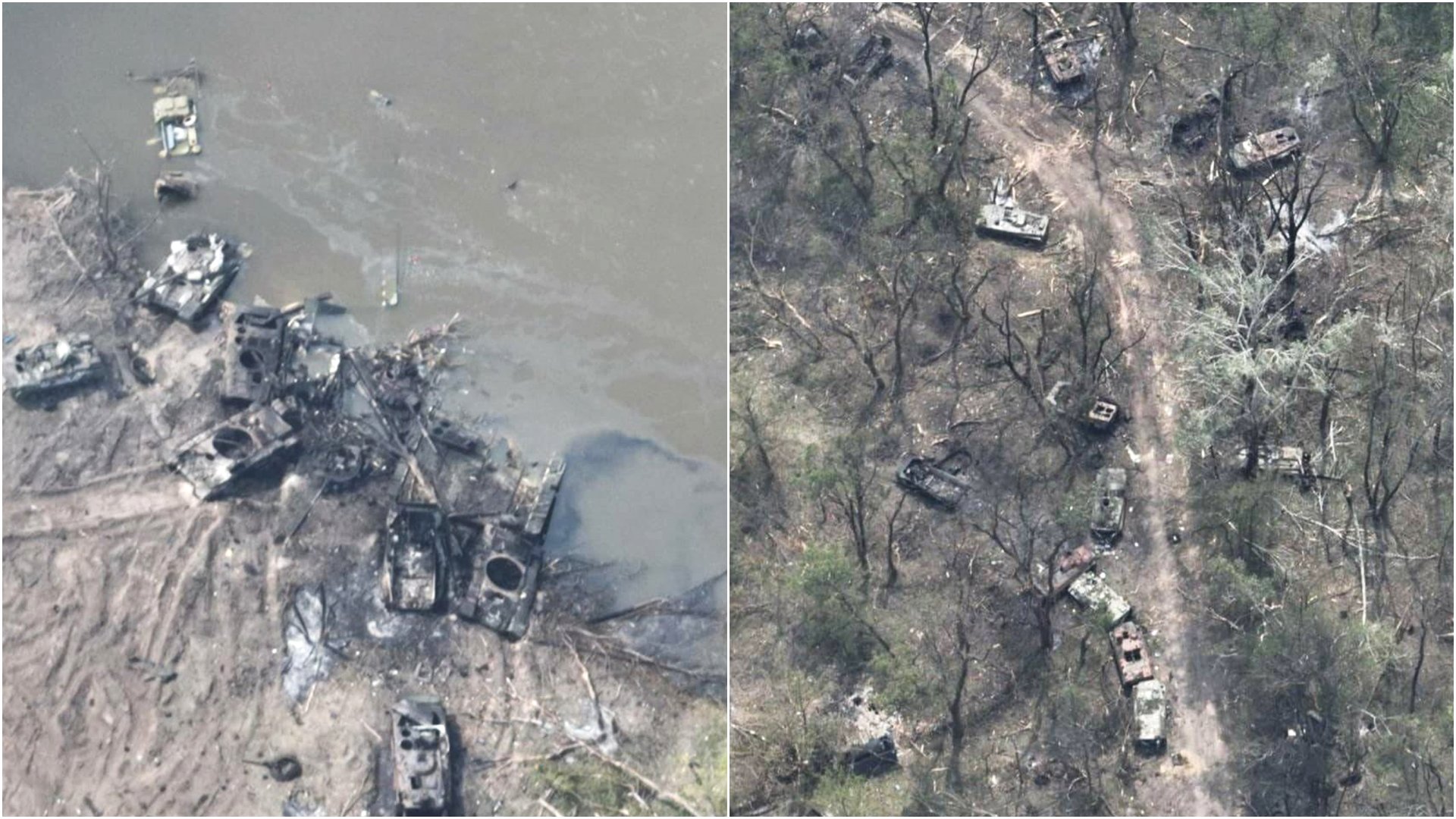 Potrivit informațiilor apărute pe rețelele sociale, forțele rusești par să fi pierdut zeci de blindate și tancuri în acel punct de trecere a răului.