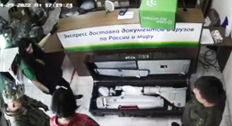 Înregistrări video din birourile firmelor de curierat obținute de jurnaliștii de investigație arată că pe 29 aprlie un ofițer rus, cel mai probabil un căpitan, a într-un punct de lucru al CDEK din orașul Valuyki, târând o cutie grea după el.