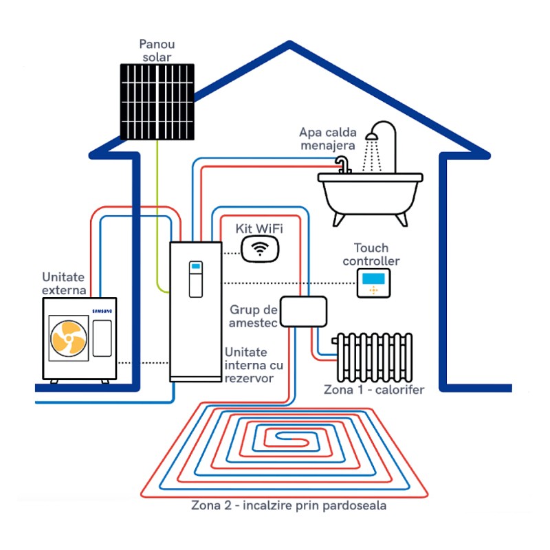 - conectare facilă la alte sisteme de încălzire deja existente în locuință