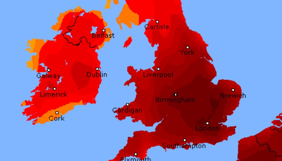 La 19 iulie, temperatura a depăşit pragul de 40 de grade Celsius în Regatul Unit, o premieră în această ţara lovită, ca şi restul Europei de Vest, de un val de căldură care a provocat incendii în jurul Londrei, distrugând case.