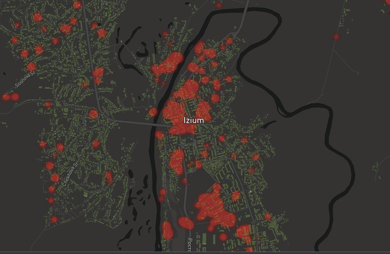 Harta distrugerilor din Izium folosind inteligenta artificialaFoto: Captura