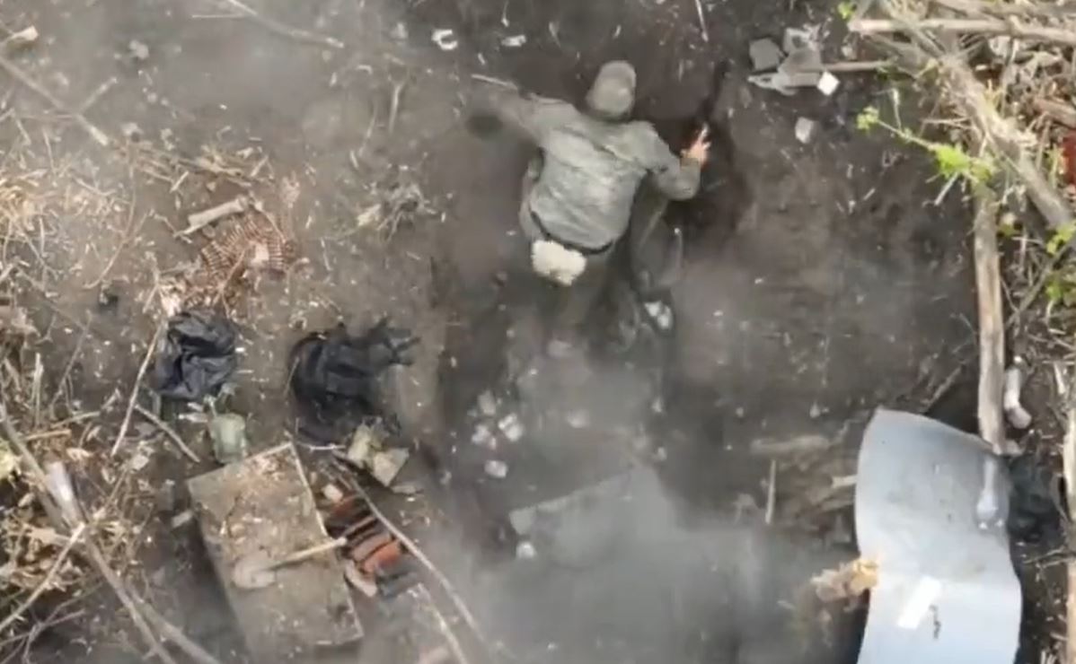 VIDEO O dronă ucraineană a lansat o grenadă către un rus care dormea în tranșee. Ce s-a întâmplat după