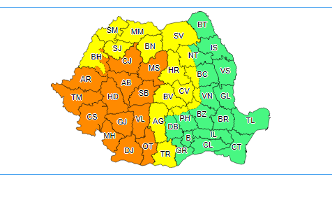 Mare parte din țară, sub avertizări cod portocaliu și galben de ploi torențiale și furtuni – HARTĂ