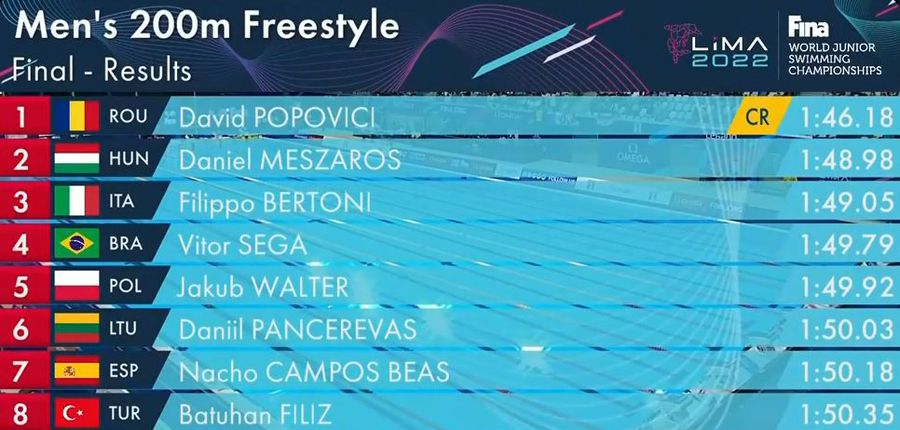 VIDEO CM Natație Juniori: Senzaționalul David Popovici, medalie de aur în proba de 200m liber