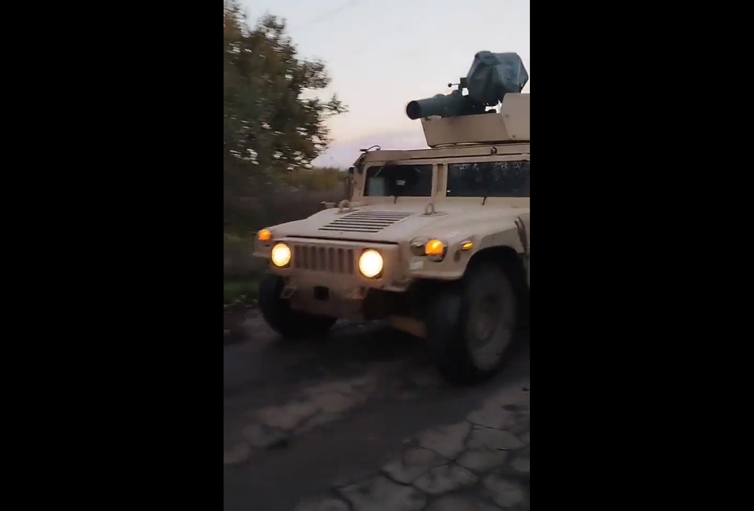 În înregistrare se poate observa de asemenea că lansatorul antitanc a fost montat pe un vehicul Humvee, de asemenea primit de ucraineni din partea Statelor Unite.
