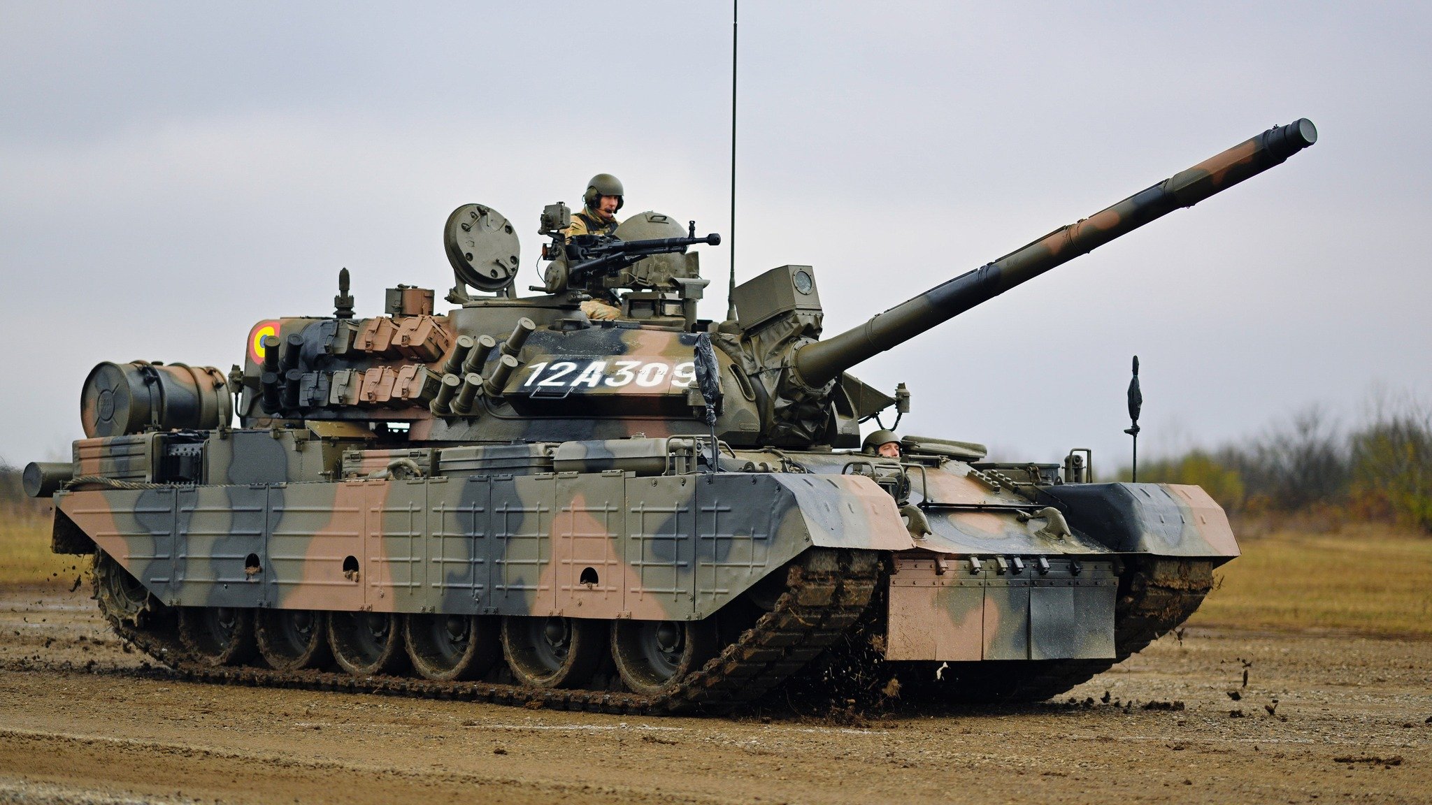 Tancul TR-85 M1 Bizonul, un tanc mijlociu, cu un echipaj de patru membri şi o masă totală de 50 de tone.