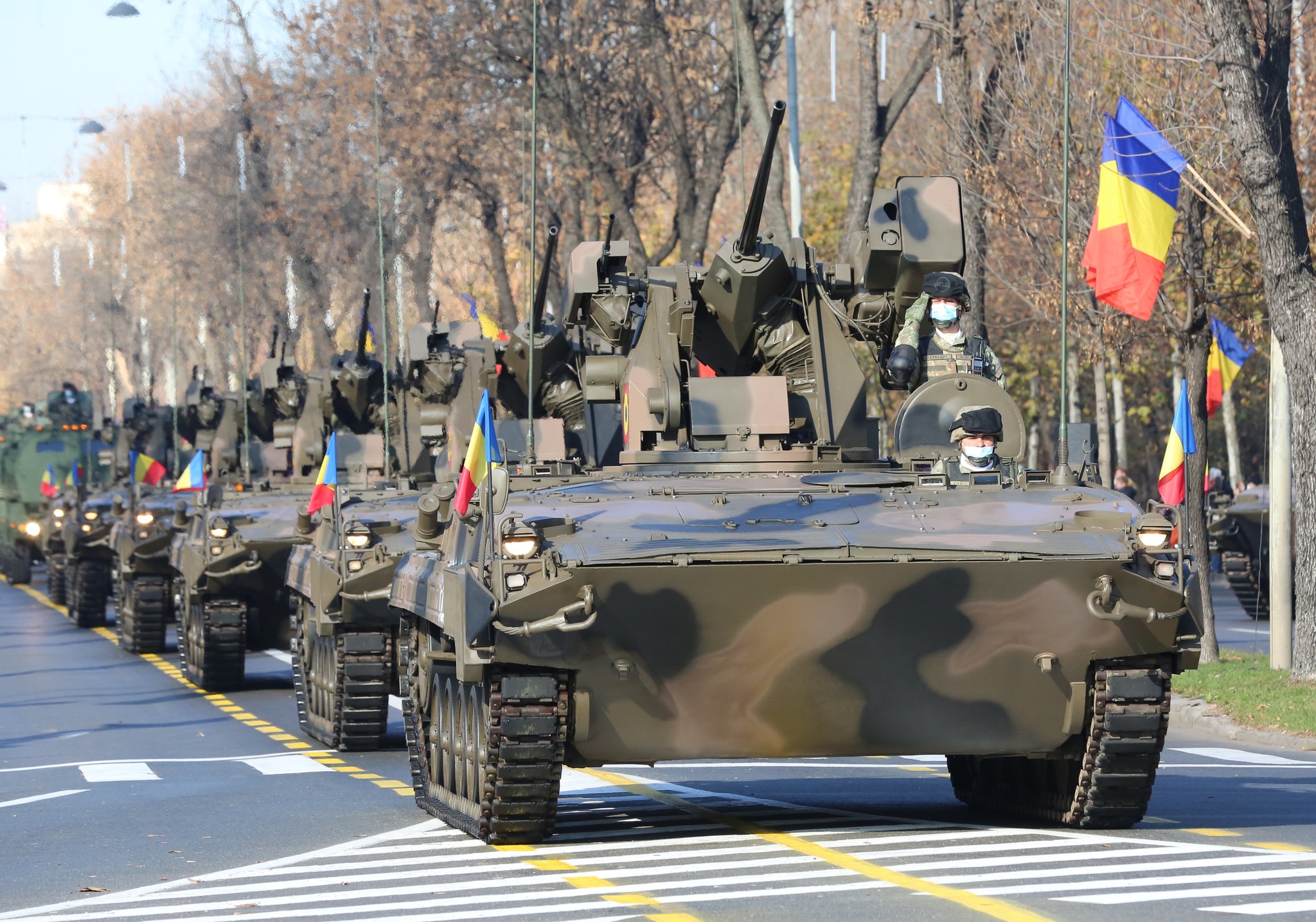 - Defilează trupe care aparțin Grupului de Luptă NATO din România, cu baza la Cincu.