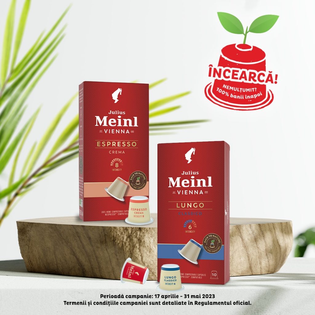 În perioada 17 aprilie – 31 mai 2023, poți savura fără griji orice sortiment de capsule Julius Meinl, pentru că primești banii înapoi dacă nu ești mulțumit.