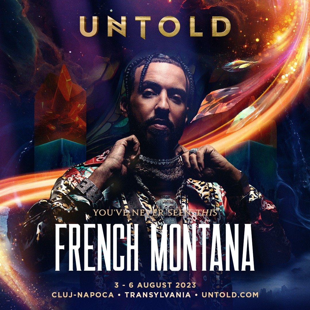 Rapper-ul FRENCH MONTANA este cunoscut în întreaga lume pentru succesele de chart și pentru implicarea în acțiuni filantropice. Artistul din spatele succesului ,,Unforgettable”, single cu peste 1,657 miliarde de ascultări pe Spotify va ajunge în 2023 în premieră pe mainstage-ul UNTOLD.