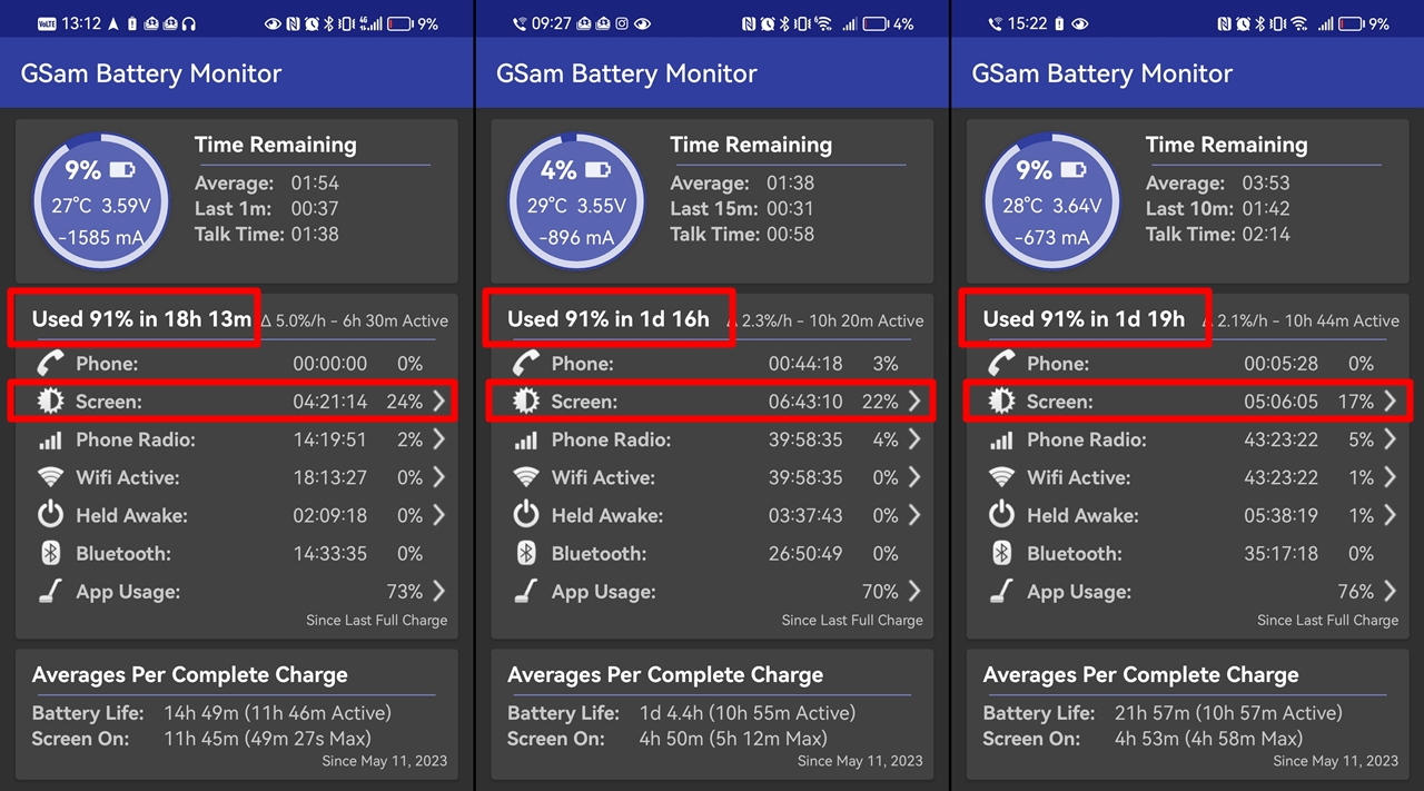În cea mai grea zi, în care am umblat numai pe afară în soare și am pozat și filmat excesiv de mult, bateria telefonului a ținut aproape 18 ore, cu un timp de ecran de peste 4 ore și 20 de minute. În alte zile mai puțin intense am ajuns și la aproape două zile de utilizare pline, cu un timp de ecran de peste 5 ore.