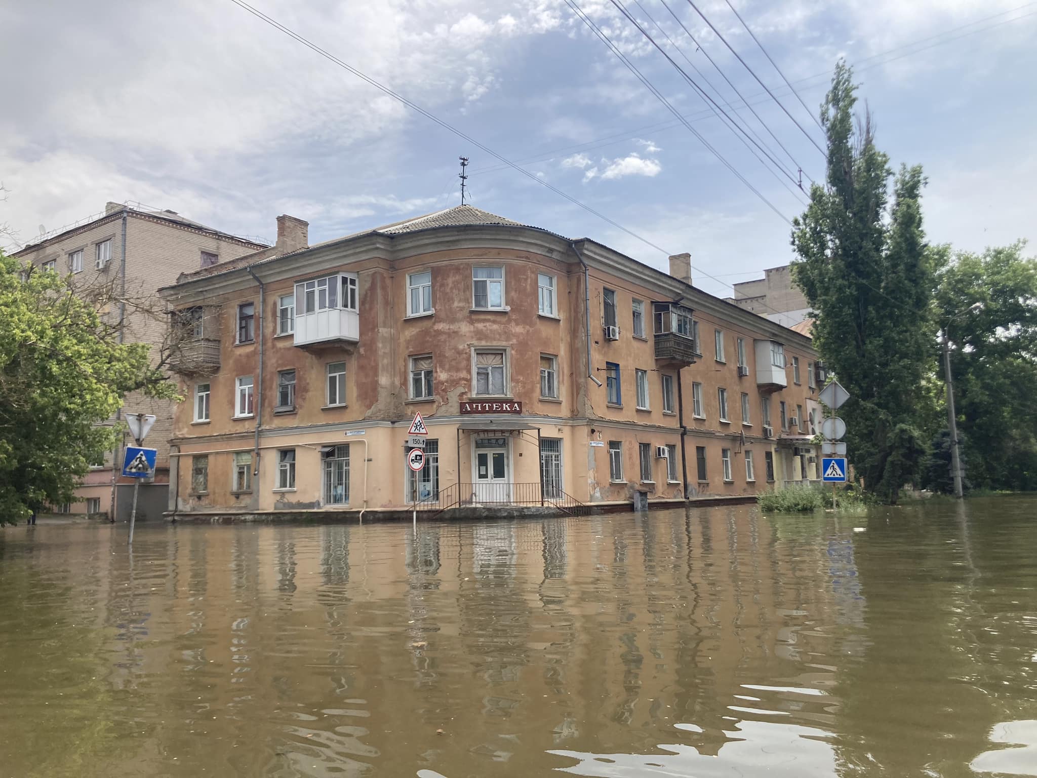 Eu mă aflu în Herson, pe malul drept care, evident, este afectat de inundații. Cea mai mare nenorocire este pe malul stâng, probabil proporția e de 30 la 70%.