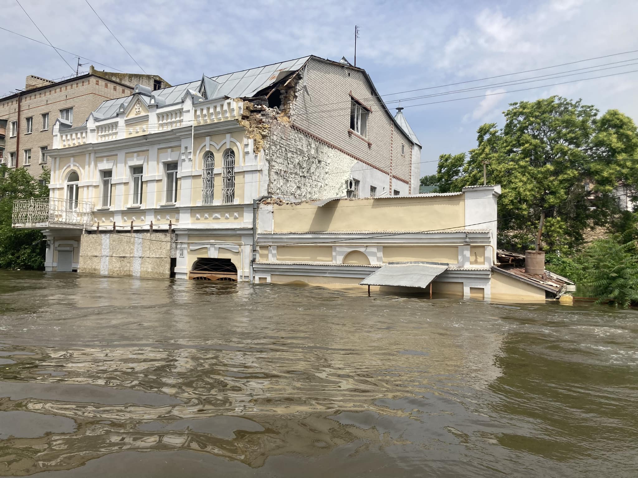 Eu mă aflu în Herson, pe malul drept care, evident, este afectat de inundații. Cea mai mare nenorocire este pe malul stâng, probabil proporția e de 30 la 70%.