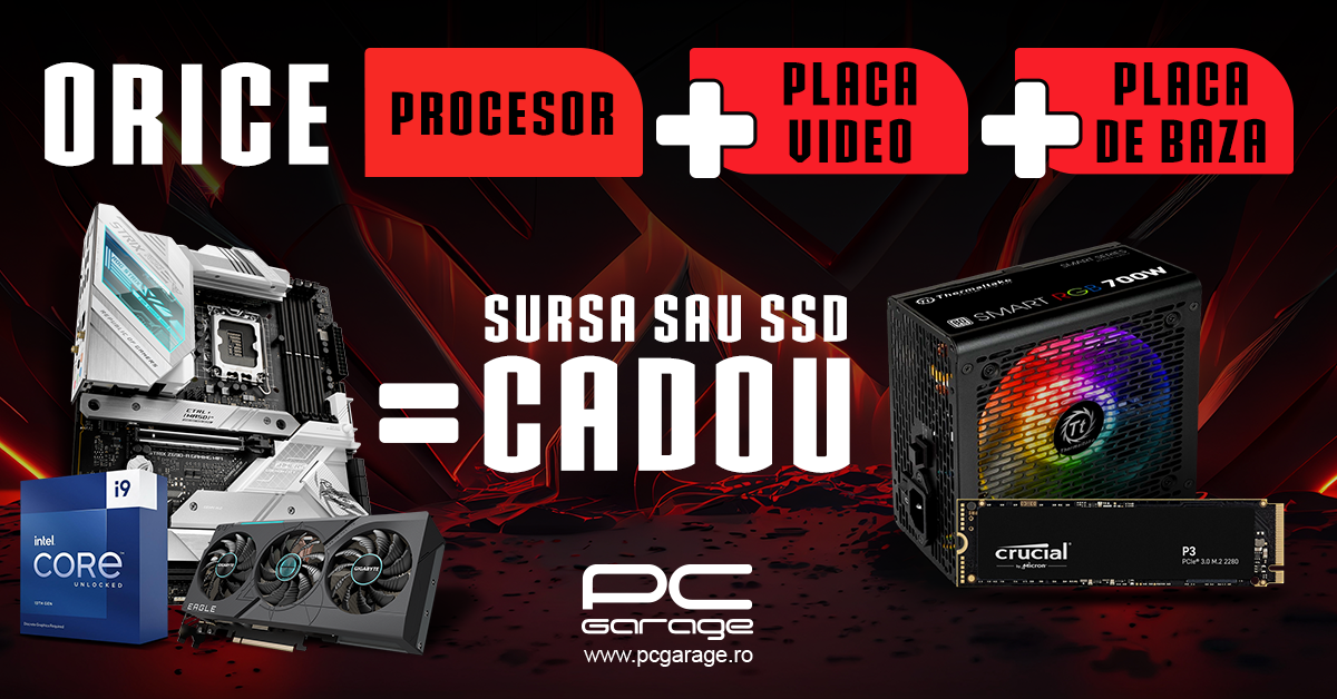 București, România – 18 septembrie 2023 – PC Garage, unul dintre cele mai mari magazine online de produse IT și electronice din România și în același timp un reper pentru toți cei pasionați de tehnologie, anunță o nouă ediție a campaniei „Te echipăm gratuit”. De data aceasta, campania desfășurată în perioada 18 septembrie – 8 octombrie 2023, oferă cadou clienților săi un SSD Crucial P3 de 1TB PCIe 3.0 sau o sursă Thermaltake Smart RGB 80+ 700W. Conform tradiției, clienții pot primi cadou la alegere un premiu dacă achiziționează orice procesor impreuna cu orice placă de bază și orice placă video din categoriile procesoare, plăci de bază, plăci video, cu o valoare minima de 2300 RON. Această campanie se adresează celor care vor să-și construiască un nou sistem de gaming, PC Garage oferind gratuit una dintre cele două componente.