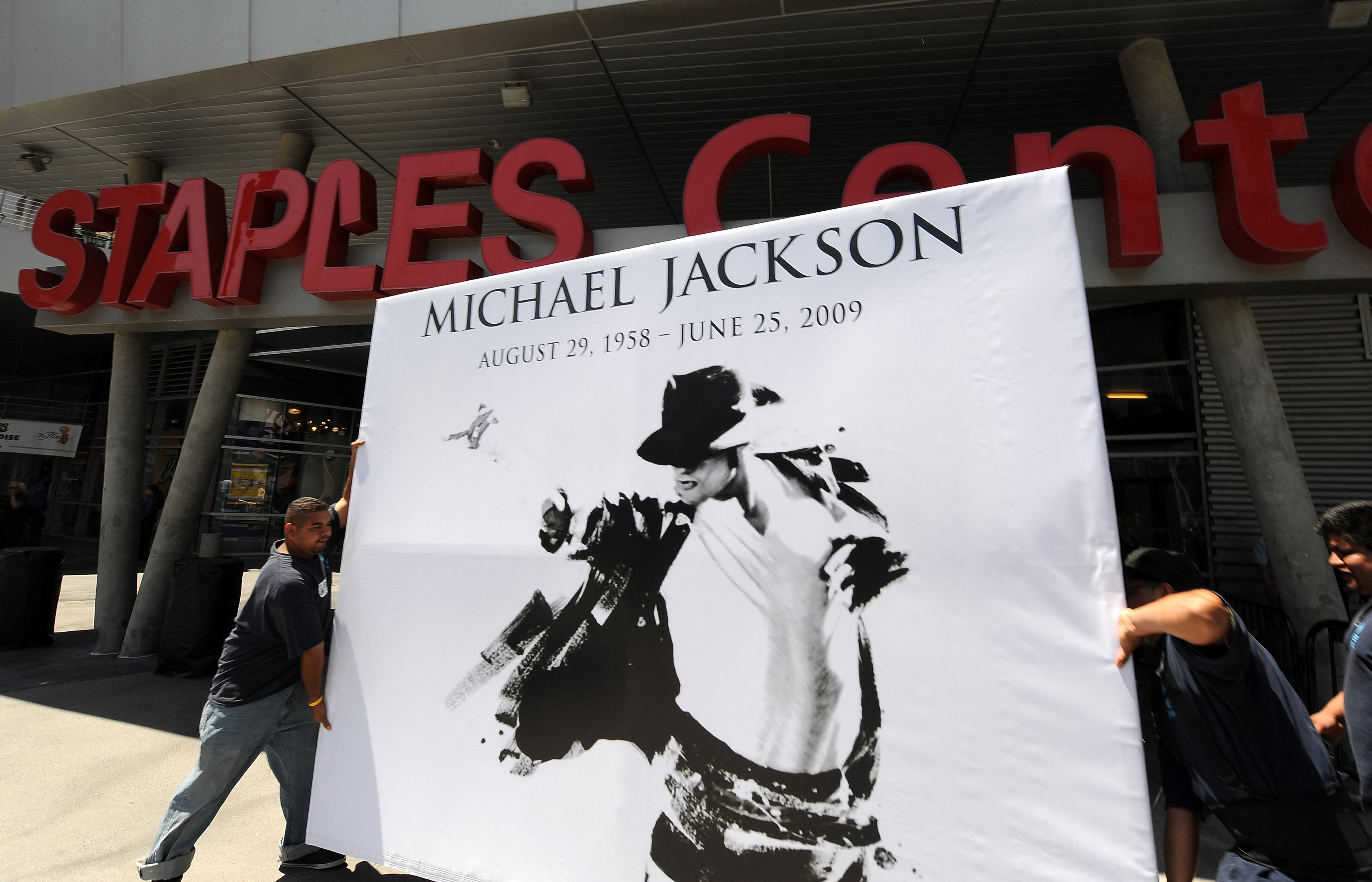 Imaginea lui Michael Jackson pe un bannerFoto: Robyn Beck / AFP / Profimedia