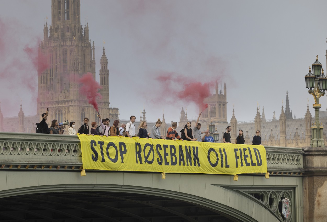 Proteste ale ecologiștilor, la Londra, împotriva proiectului RosebankFoto: Peter MacDiarmid / Shutterstock Editorial / Profimedia