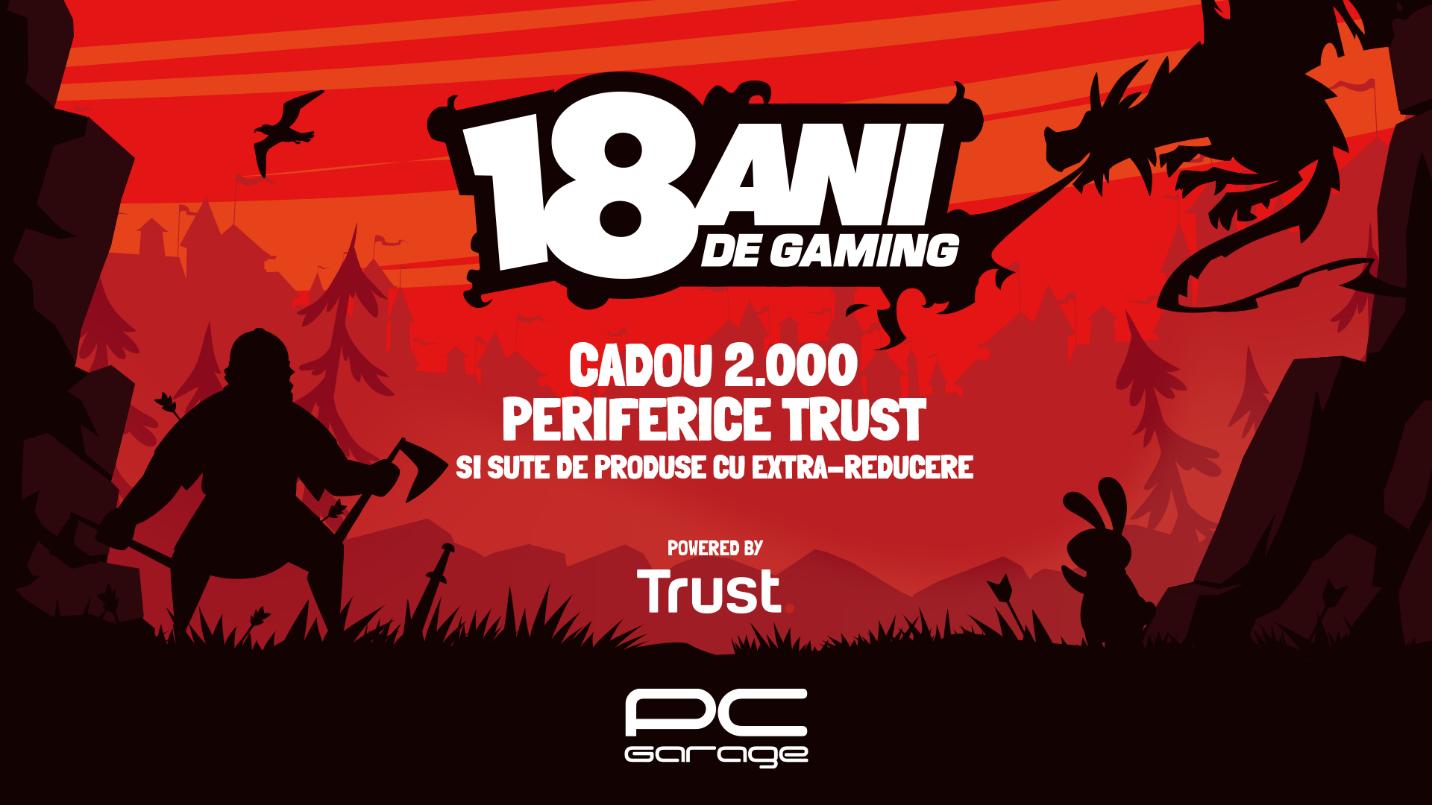 PC Garage serbeaza 18 ani de pasiune pentru gaming, cu oferte speciale si periferice cadou de la Trust