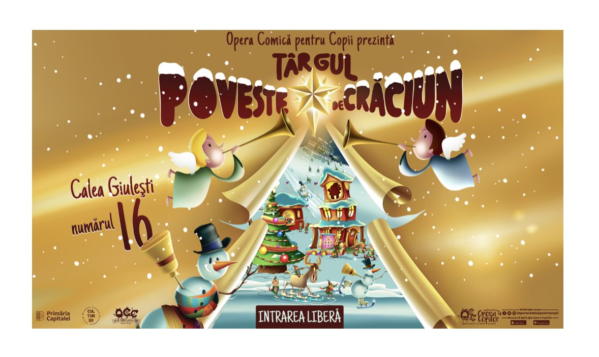 Pe 17 noiembrie, la ora 16:00, se deschid porțile Târgului „Poveste de Crăciun”, în curtea Operei Comice pentru Copii, pe Calea Giulești nr. 16. O mulțime de activități și surprize de sezon, plus 145 de spectacole, îi așteaptă pe cei mici împreună cu familiile lor. Evenimentul are loc în perioada 17 noiembrie – 30 decembrie 2023, după următorul program: