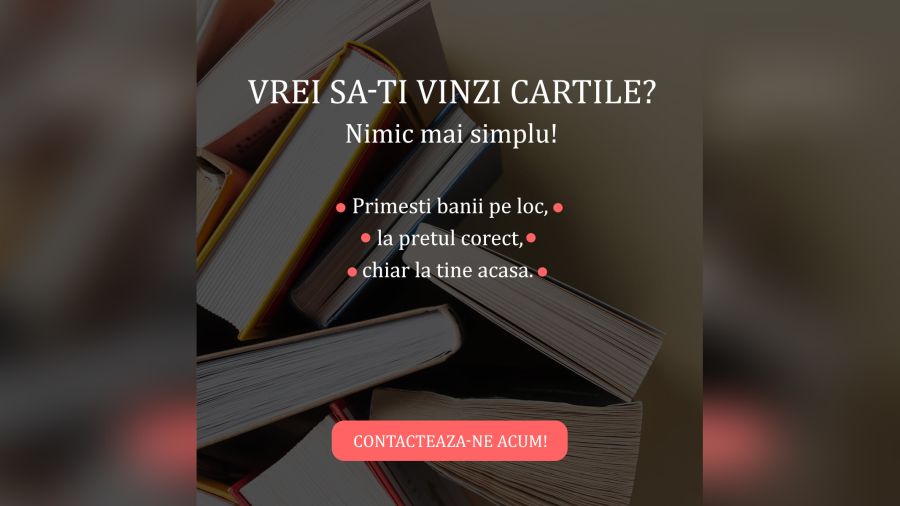 Ai aflat deja cum să alegi cumpărători de cărți cu experiență. Printre aceștia, se regăsesc și anticariatele. Desigur, nu orice fel de anticariate, ci acelea care dispun de specialiști în procesul de evaluare cărți vechi și îți oferă un preț just pentru colecția de cărți pe care intenționezi să o vinzi. De ce să-ți vinzi cărțile la un anticariat? Pentru că te asiguri că ulterior acestea ajung la alți cititori pasionați, îți asiguri o sursă de venit și îți reorganizezi spațiul gol din casă așa cum îți dorești. Ai găsit anticariatul potrivit și dorești să știi cum să-ți vinzi cărțile? Contactează-l, fie printr-un apel telefonic, fie printr-un e-mail detaliat, în care îți expui dorința de a-ți vinde cărțile.
