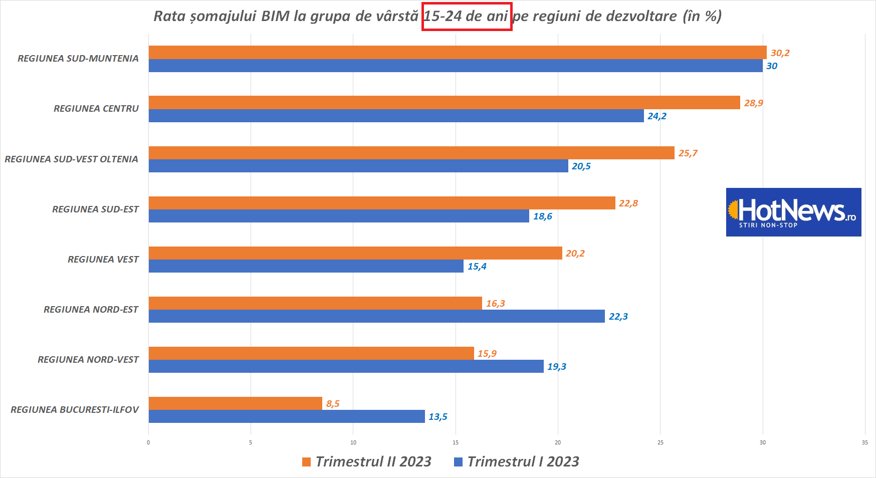 HotNews s-a uitat mai în detali în ce regiuni din țară șomajul tinerilor e cel mai ridicat, cifrele oficiale indicând regiunea Sud-Muntenia, care este formată din șapte județe – Argeș, Călărași, Dâmbovița, Giurgiu, Ialomița, Prahova și Teleorman, și unde șomajul tinerilor este de peste 30%.