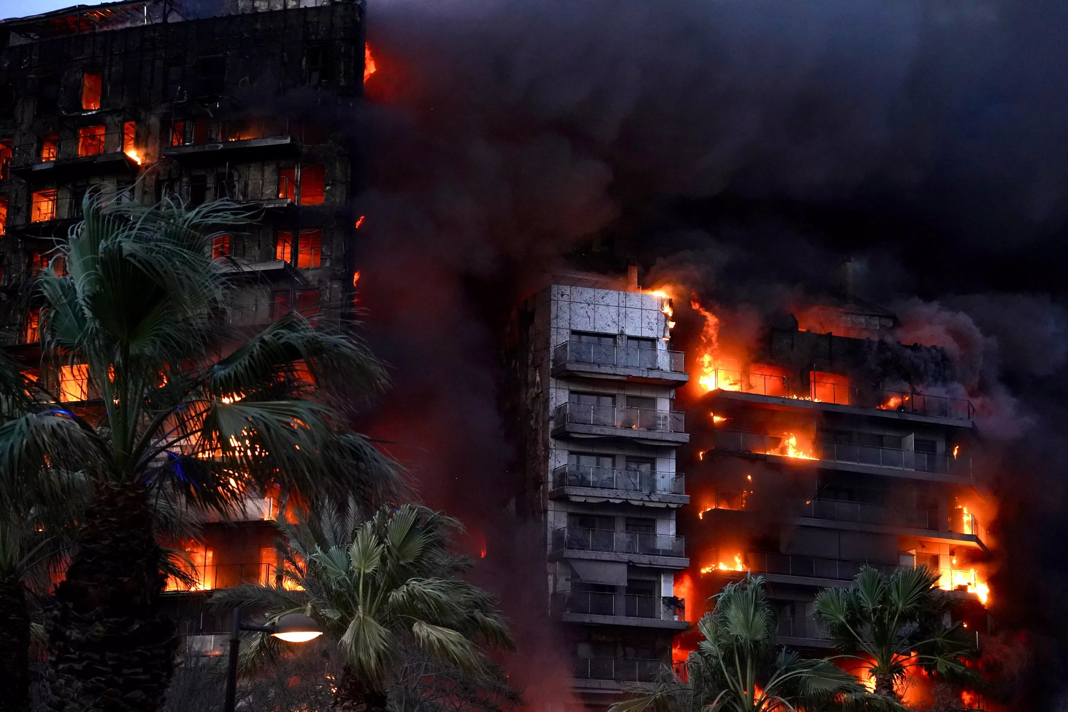 Un incendiu de proporţii a cuprins, joi, o clădire de 14 etaje din cartierul Campanar din Valencia. Potrivit unui bilanţ încă provizoriu, zece persoane au murit şi până la 15 ar fi dispărute. În timpul incendiului, care s-a propagat extrem de rapid, ajutat de vântul puternic, mai multe persoane au rămas blocate pe balcoane încercând să scape din focul care ar fi izbucnit la etajul şapte şi în circa jumătate de oră a cuprins întreaga clădire.