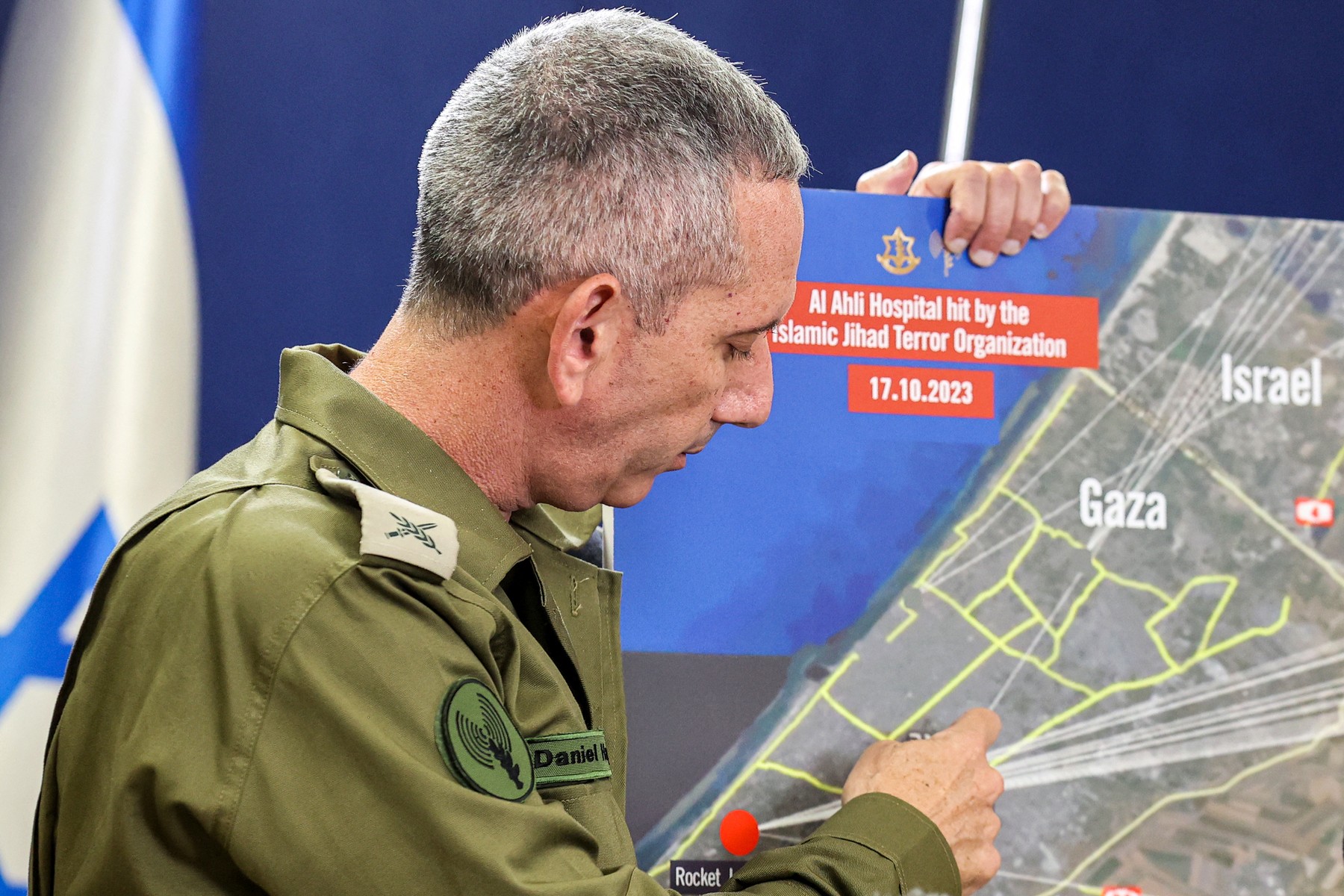 Purtătorul de cuvânt al armatei israeliene, contraamiralul Daniel Hagari in fata presei Foto: GIL COHEN-MAGEN / AFP / Profimedia