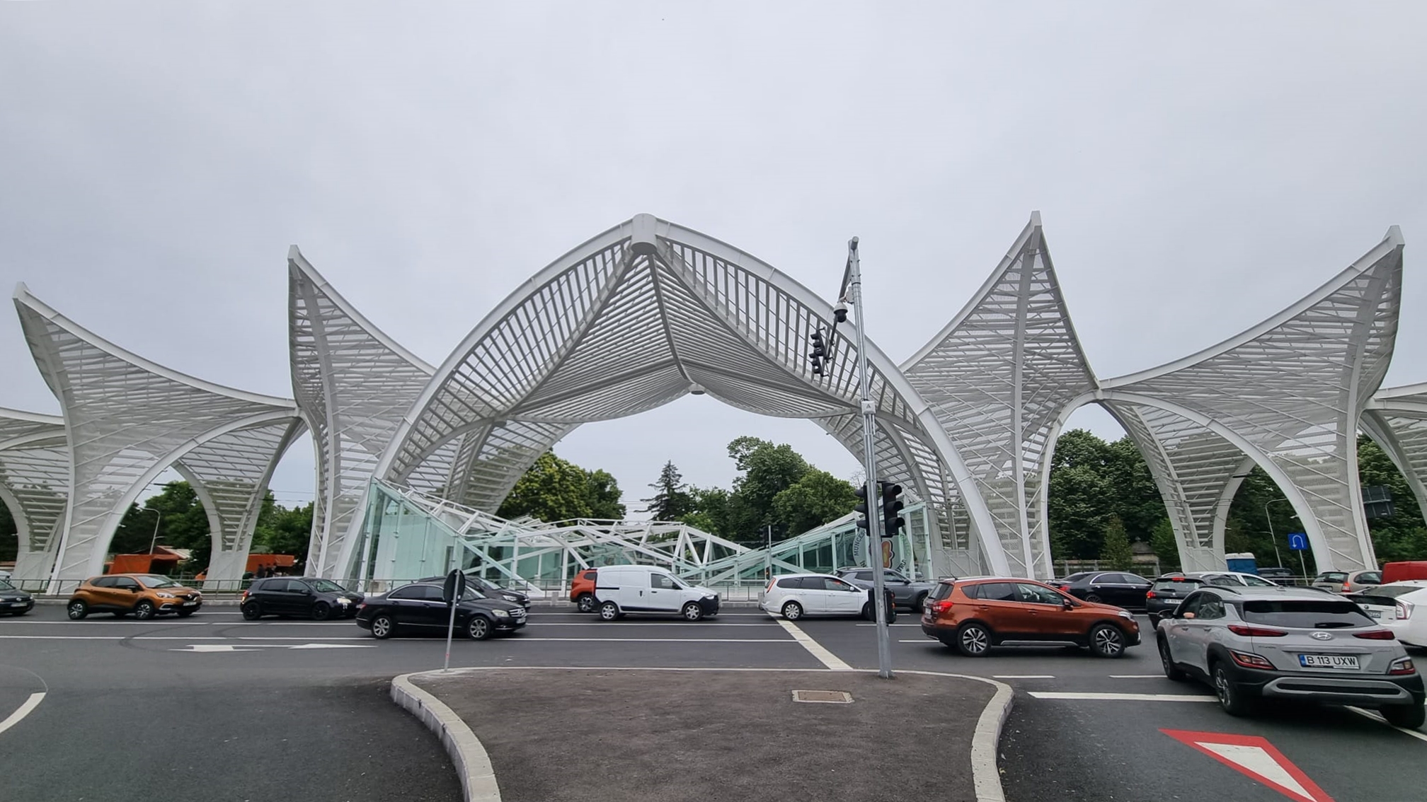 - ”Poarta Eroilor” este o structură de design care acoperă, fără să protejeze însă, o stație de tramvai. ”Este inspirat din lucrările renumitului Santiago Calatrava”, a spus primarul Băluță, care vorbește despre un ”hub de transport” la Eroii Revoluției.