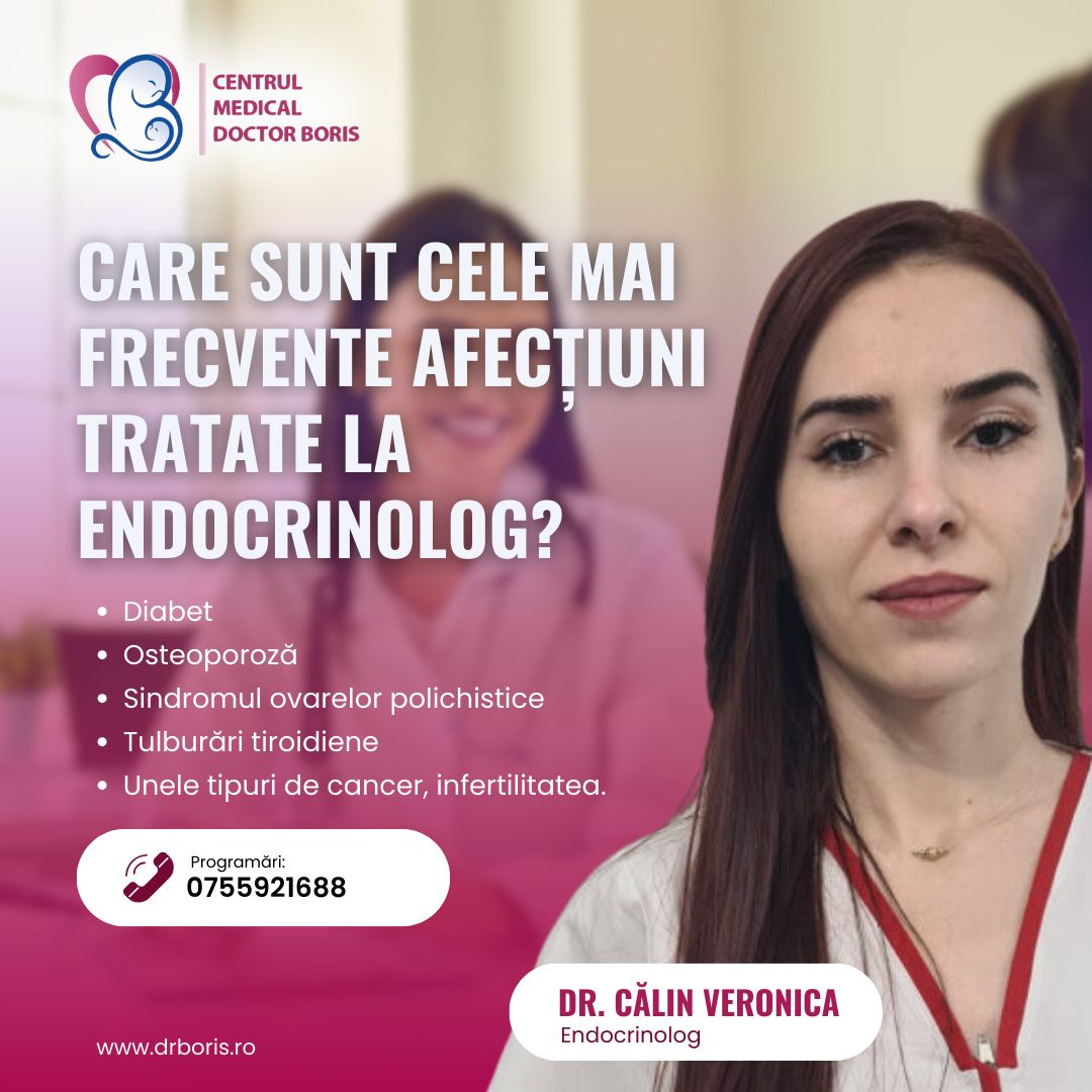 Programează o consultație în cadrul CENTRULUI MEDICAL DOCTOR BORIS, la Dr. Călin Veronica, disponibilă în fiecare zi de marți, și ai grijă de sănătatea ta hormonală!