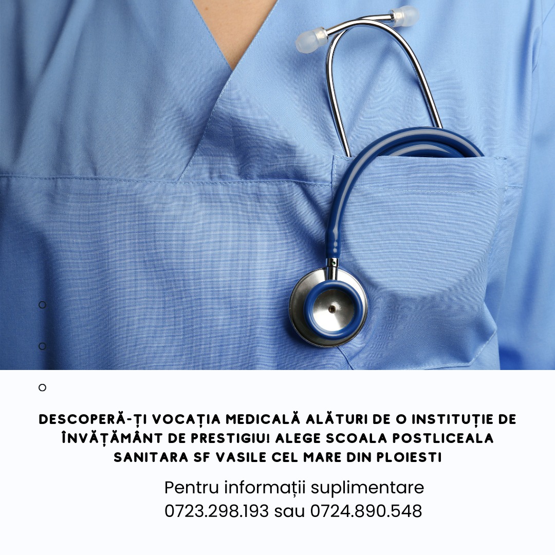 Nu rata ocazia de a transforma pasiunea pentru îngrijirea medicală într-o carieră de succes! Înscrie-te acum și începe-ți călătoria la Școala Postliceală Sanitară „Sf. Vasile cel Mare” din Ploiești!