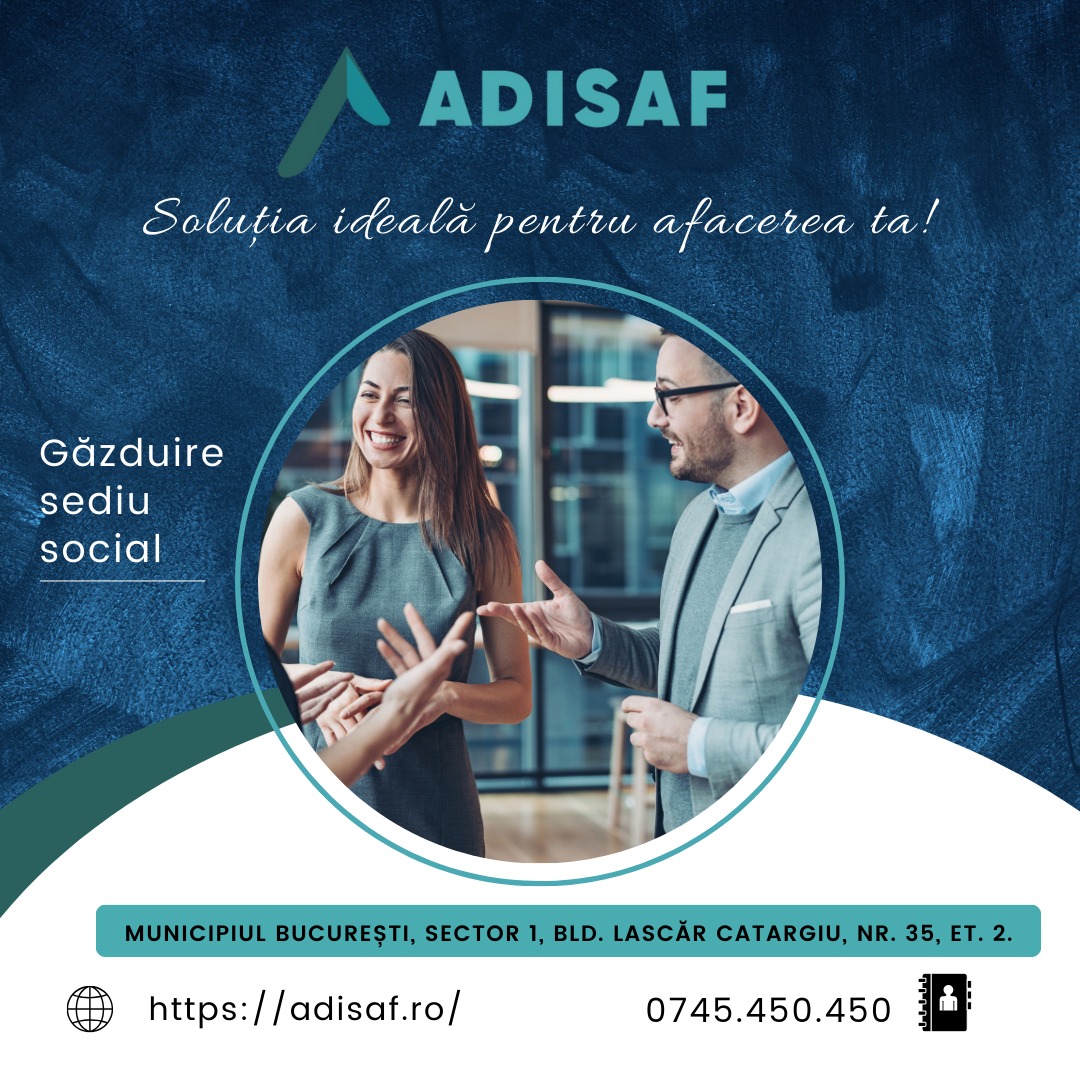 Pentru antreprenorii care nu au un spațiu propriu adecvat pentru sediul social al firmei, ADISAF oferă și servicii de găzduire a sediului social. Astfel, întreprinzătorii pot evita procedurile complicate de obținere a acordului vecinilor sau al asociațiilor de proprietari, beneficiind de o soluție practică, rapidă și la costuri accesibile.