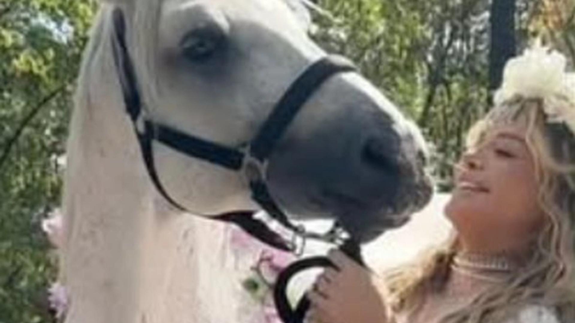 Loredana Groza, în timp ce hrănea un cal cu buzele / Sursa foto – Captură video