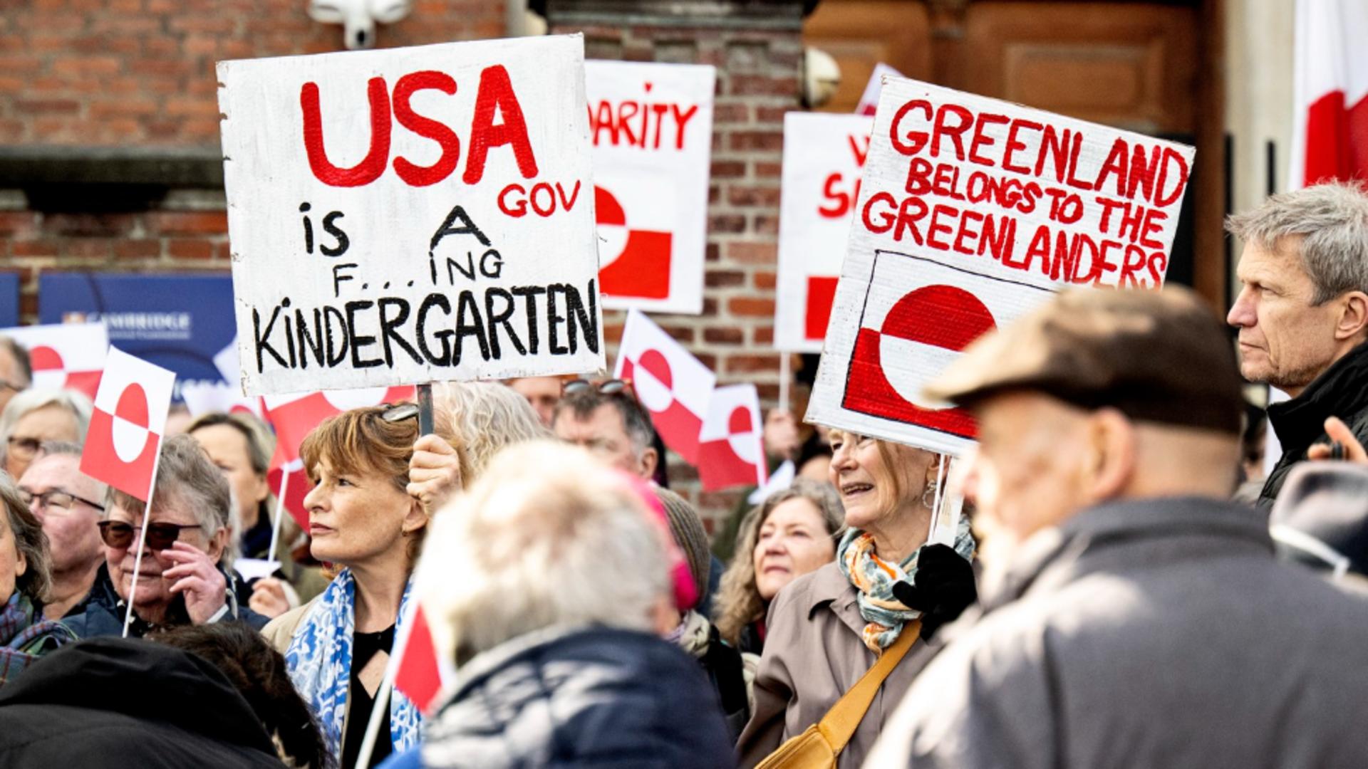 Aproape 2.000 de persoane s-au adunat în fața clădirii ambasadei SUA la Copenhaga, în timp ce aproximativ 1.000 s-au adunat în centrul orașului Aarhus, al doilea oraș ca mărime din Danemarca, pentru a-și arăta solidaritatea cu insula arctică.