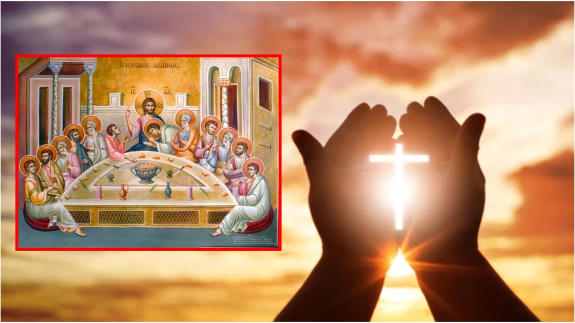 „Doamne Iisuse Hristoase, Fiule şi Cuvântul lui Dumnezeu Tatăl, Care în ziua de astăzi ai luat Cina cea de pe urmă, cu ucenicii Tăi, şi cu mare umilinţă ai spălat picioarele lor şi ale ucenicului care Te-a vândut! Apoi, luând pâine şi vin în mâinile Tale Cele Sfinte şi binecuvântându-le cu puterea Ta cea Dumnezeiască, le-ai făcut însuşi Trupul şi Sângele Tău, cu care i-ai împărtăşit zicând: „Luaţi, mâncaţi şi beţi, că acestea sunt Trupul şi Sângele Meu, pentru ca să se ierte păcatele voastre’.