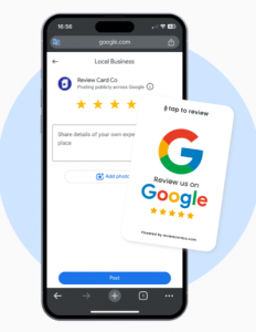 | Afișare | Primești carduri „Tap to Review”, le ai la vedere în locație sau le dai clienților după serviciu / achiziție. |