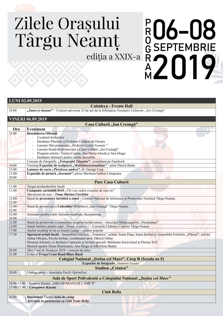 Zilele orașului Târgu Neamț în 2019: cu, pentru și despre „Oamenii locului” [PROGRAM]