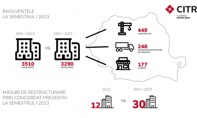 30 companii au apelat în S1 2023 la concordat preventiv, dintre care opt – companii de impact, cu active de peste 1 milion de euro, comparativ...