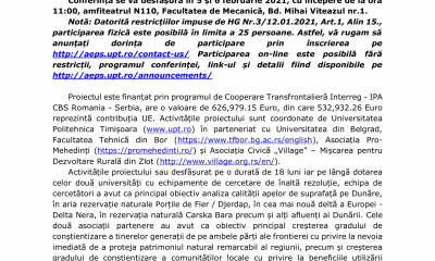 Conferință de încheiere a proiectului ”Studii academice privind calitatea apelor de suprafață în rezervațiile naturale transfrontaliere relevante Djerdap / Parcul național Iron Gate și rezervația naturală...