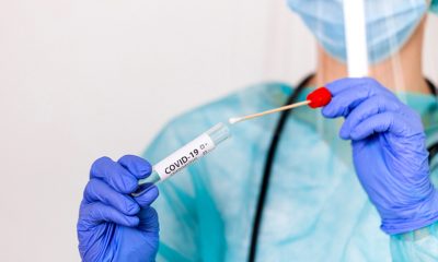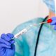 Lab technician holding swab collection kit,Coronavirus COVID-19 specimen collecting equipment,DNA nasal and oral swabbing for PCR polymerase chain reaction laboratory testing procedure and shipping Prezentarea unui...