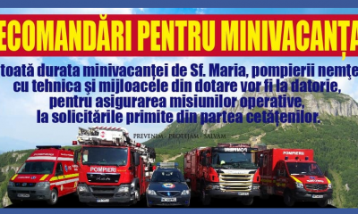 Pe toată durata minivacanței de Sf. Maria, pompierii nemţeni cu tehnica şi mijloacele din dotare vor fi la datorie, pentru asigurarea misiunilor operative, la solicitările primite...