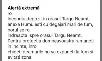 Luni, 5 august, în jurul orei 22.40, cei aflați în zona Târgu Neamț au primit următorul mesaj prin sistemul RO-Alert: citește și: Incendiu puternic la o...
