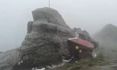 A nins timp de 15 minute, luni după-amiază, în Munții Bucegi, la Vârful Omu, unde maxima zilei a fost de două grade Celsius. Meteorologii spun că...