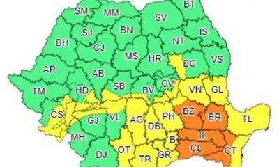 ANM a emis un cod portocaliu de intensificări ale vântului, vijelii și cantități de apă însemnate pentru cinci județe din sud-estul țării și un cod galben...